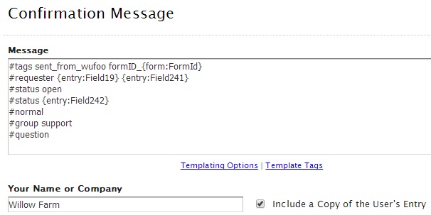 The Wufoo confirmation email will be sent to Zendesk to create the support ticket.