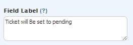 The field labelled 'Ticket will be set to pending' that holds the predetermined 'pending' value will have the label value appear on the form. The label just helps you identify the field. Once you have your rules set up, you can remove the field label to show a blank value.