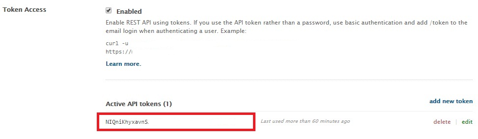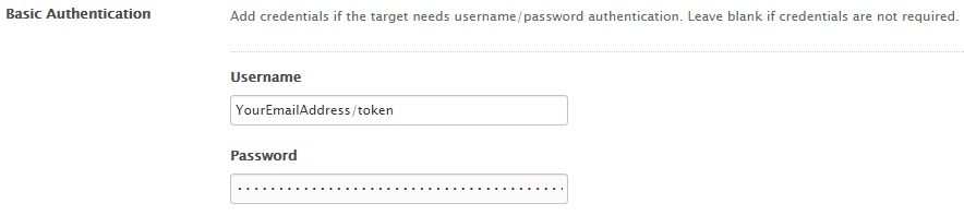 In the password field, paste the long token reference that you created in the API section.
