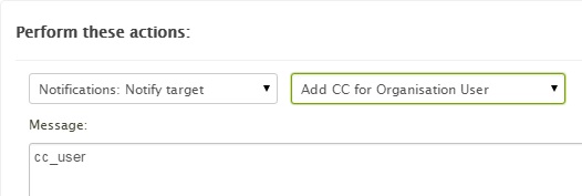 Extensions are available as trigger actions. This extension will add our organisation's designated user as a CC.