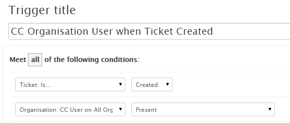We are going to create a trigger to automatically CC a customer on all tickets created for an organisation. The CC address is held in a custom organisation field. You can use one trigger to notify multiple organisations.
