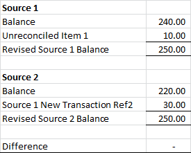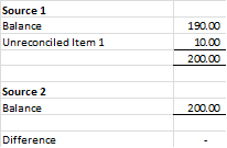 - A Zero value difference between the reconciled sources