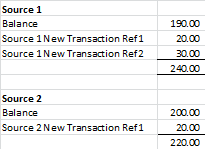 Each Source has new transactions: